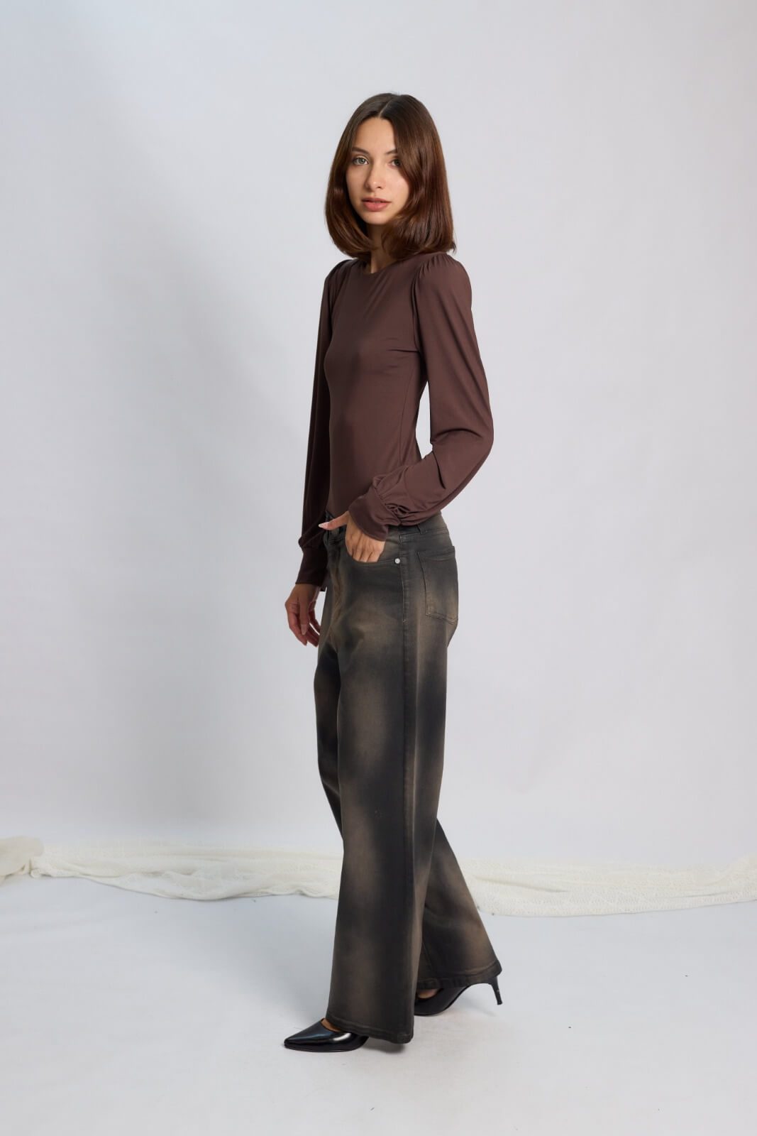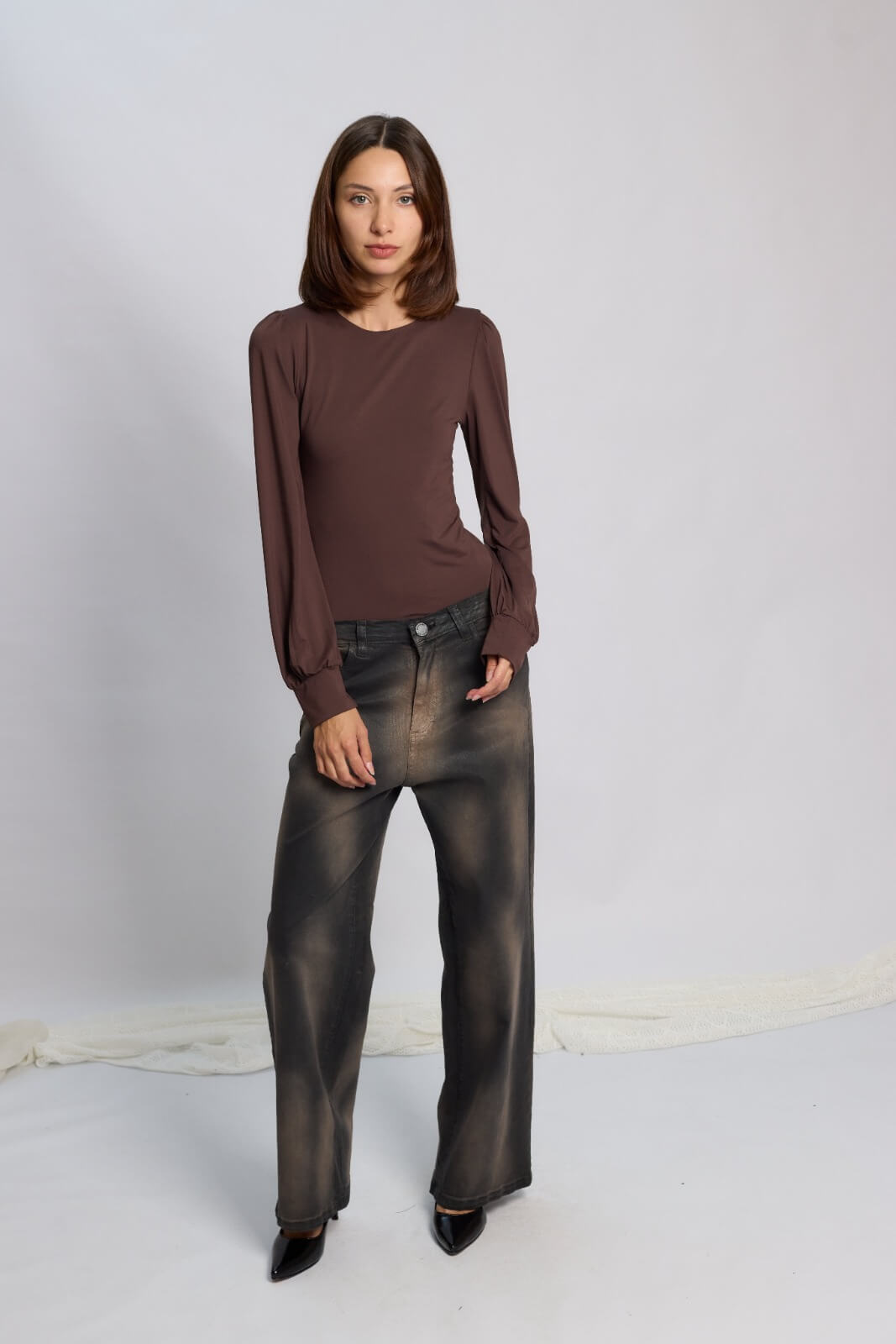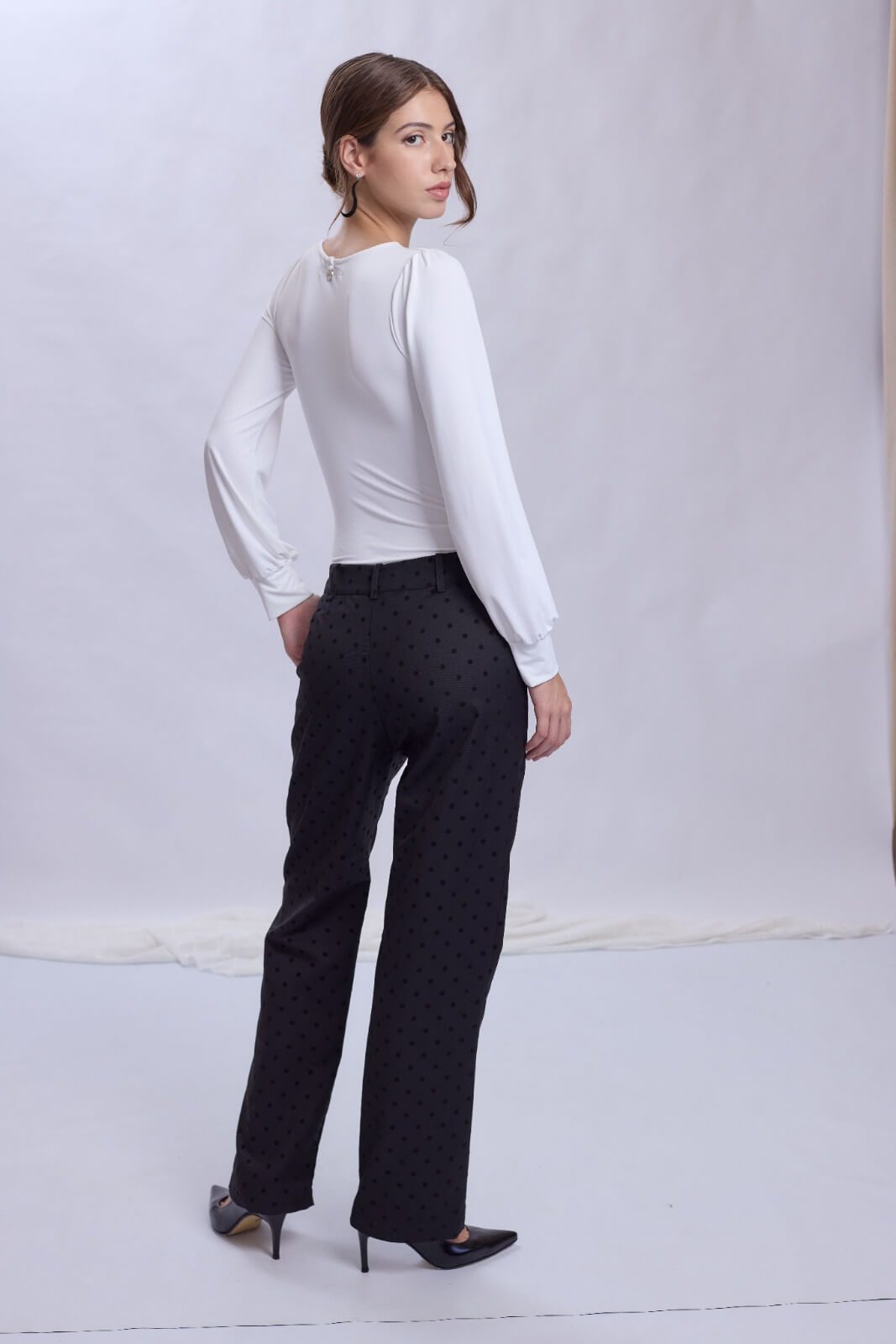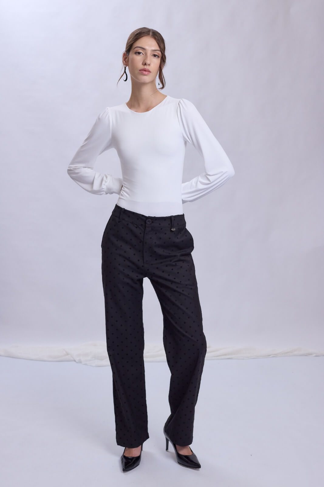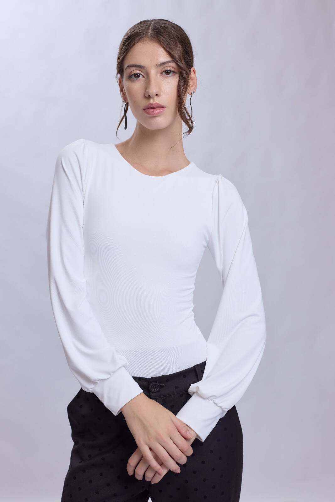 Body manga larga, con frunce hombreras confeccionado en algodón con lycra. Gracias a su composición, es ideal como primera piel. Un comodín versátil e infaltable para combinar tus outfits.