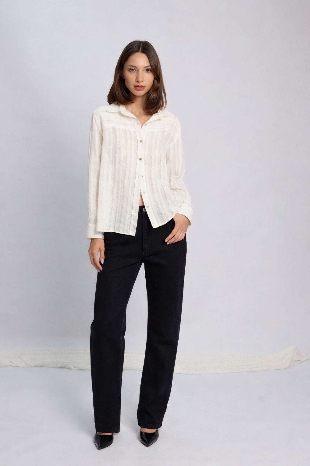 Pierna recta de caída limpia, que alarga visualmente la silueta.