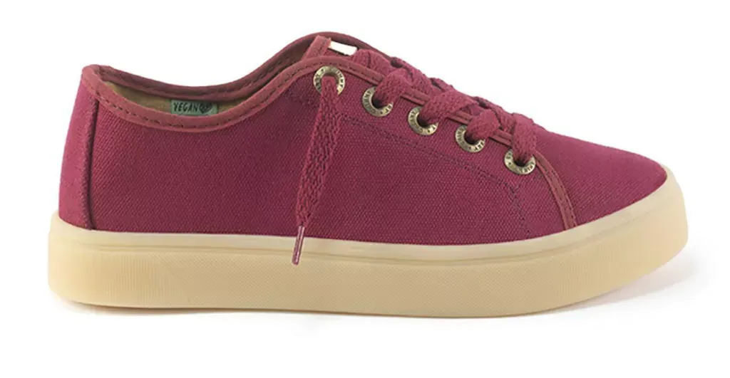 Descubre las Zapatillas Urban Bordo, cómodas y veganas. Lona 100% algodón y suela resistente. ¡Añade estilo a tu look diario y elige amor!
