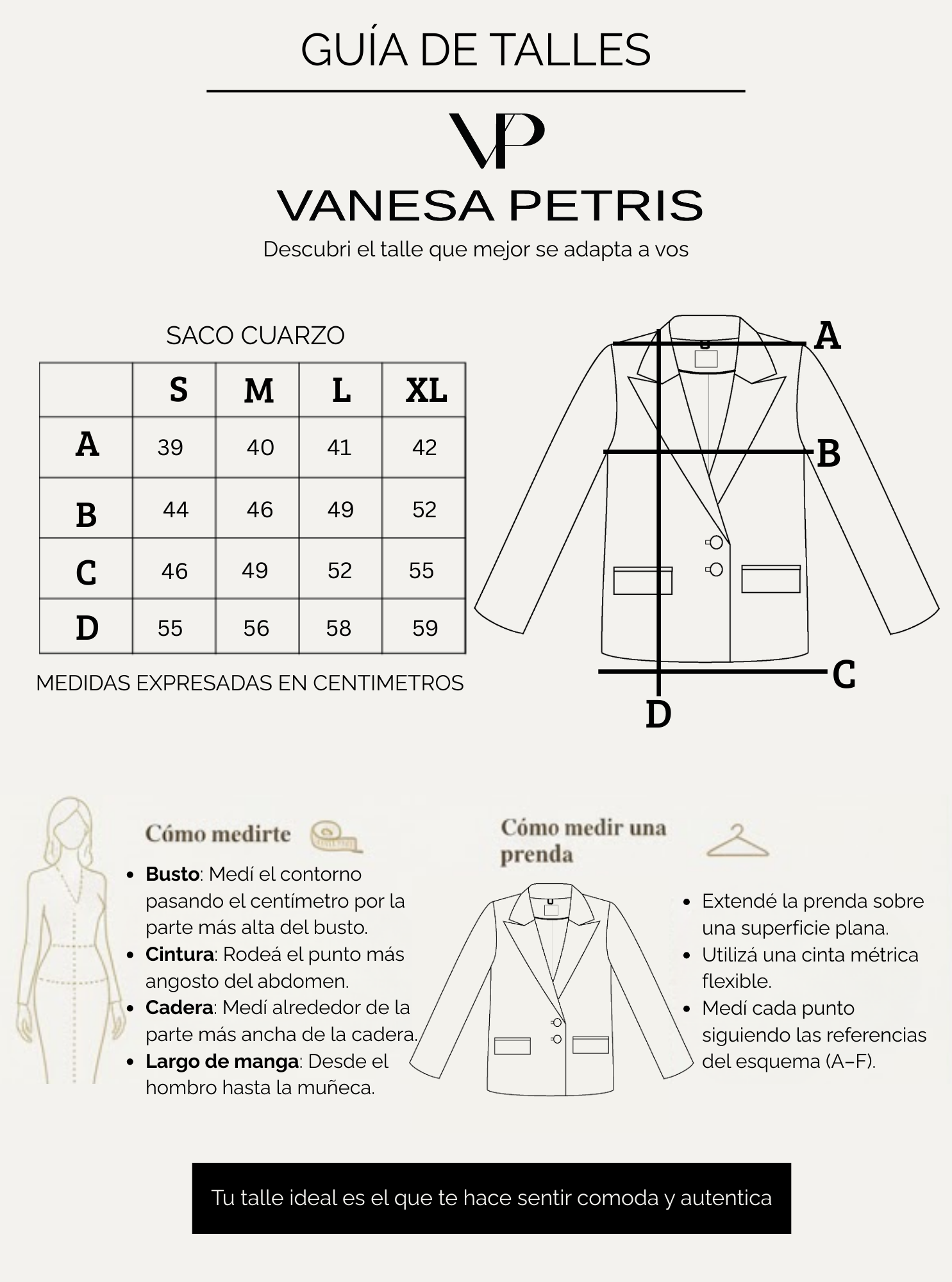 Guia de talles - Blazer y Sacos