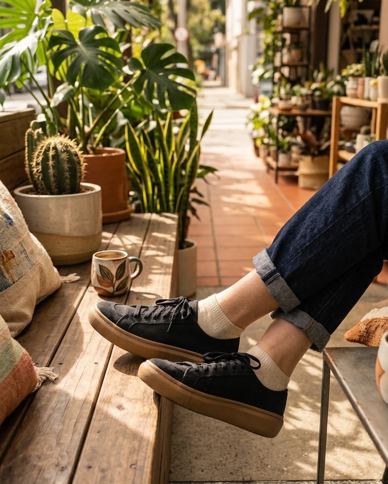 La Sneaker Urbana Negra Bicolor de Chimmy Churry llega a Estancias Wear para ofrecerte una opción liviana, resistente y con mucha personalidad. Su combinación de negro y suela ámbar (caramelo) es tendencia y súper fácil de combinar.